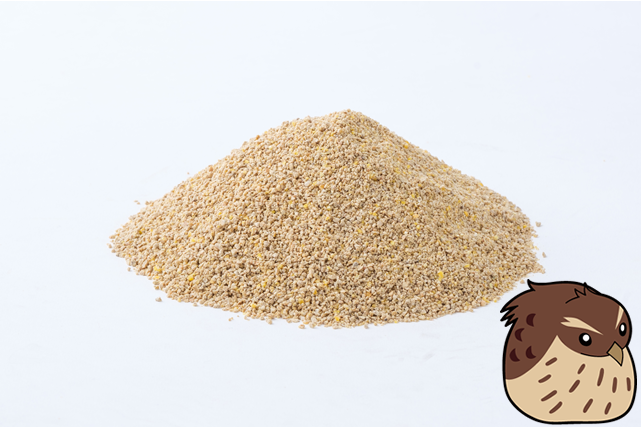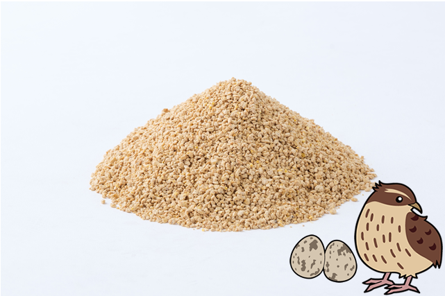 産卵に必要な栄養素を配合し、かつ消化吸収のよいクランブル形状の栄養満点な「えさ」で親鳥の健康を守ります。