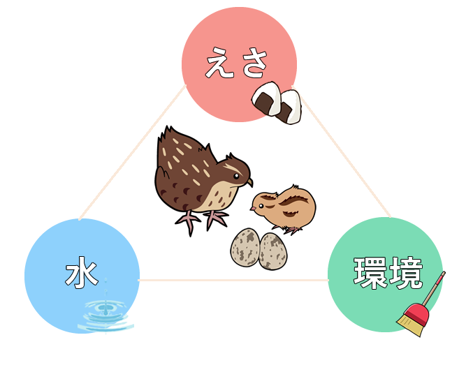 うずらが過ごしやすい環境づくりを優先します。
