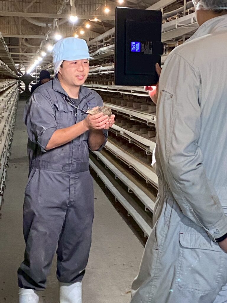 広報/SNS 2025.4.9幡野ファーム、TikTok撮影風景③📸 2025年4月9日 hatanofarm TikTok撮影風景その3です! 育雛舎から移動して、成鶉舎にきました。 ここではうずらたちが引っ越しをしてくる前の準備やスッタッフインタビューの様子を撮影しています📸 引っ越し前の準備としてベルトなどの掃除を行います。 実際に作業しているスタッフに話を聞きながら撮影を進めました。 その後、うずらを手に乗せてスタッフインタビューを行っています。 手に乗っていたうずらが飛んで行ってしまいそうなくらいとても元気でした😊 成鶉舎の様子も順次公開予定ですので、幡野ファームで検索して是非ご覧ください👀