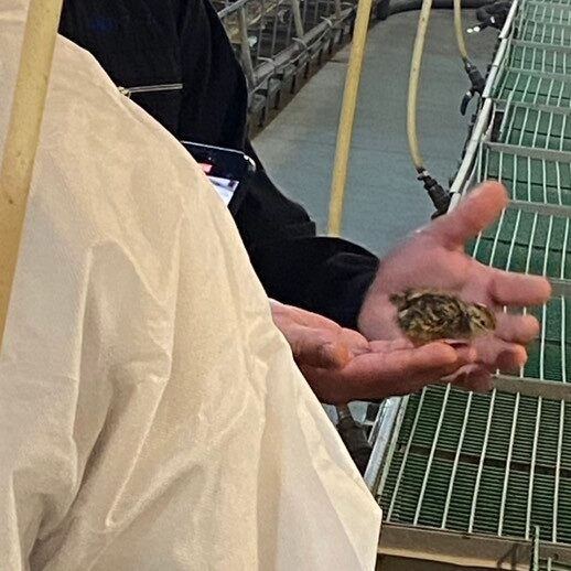 広報/SNS 幡野ファームTikTok撮影風景その1📸 2025年2月7日 hatanofarm 幡野ファームではTikTokを使い、うずらたちの紹介を行っています。 今回はその撮影風景をお届けしていこうと思います! 今回はまず中雛舎で撮影を行いました。実際に雛を手に乗せながら紹介を行っています。 じつはこの時雛の元気が良すぎて、数羽脱走しました・・・😅💦 その後無事に捕獲しました! 小さな雛たちとってもかわいいですね😊 今回撮影された動画も順次投稿予定ですので是非幡野ファームで検索してご覧ください!