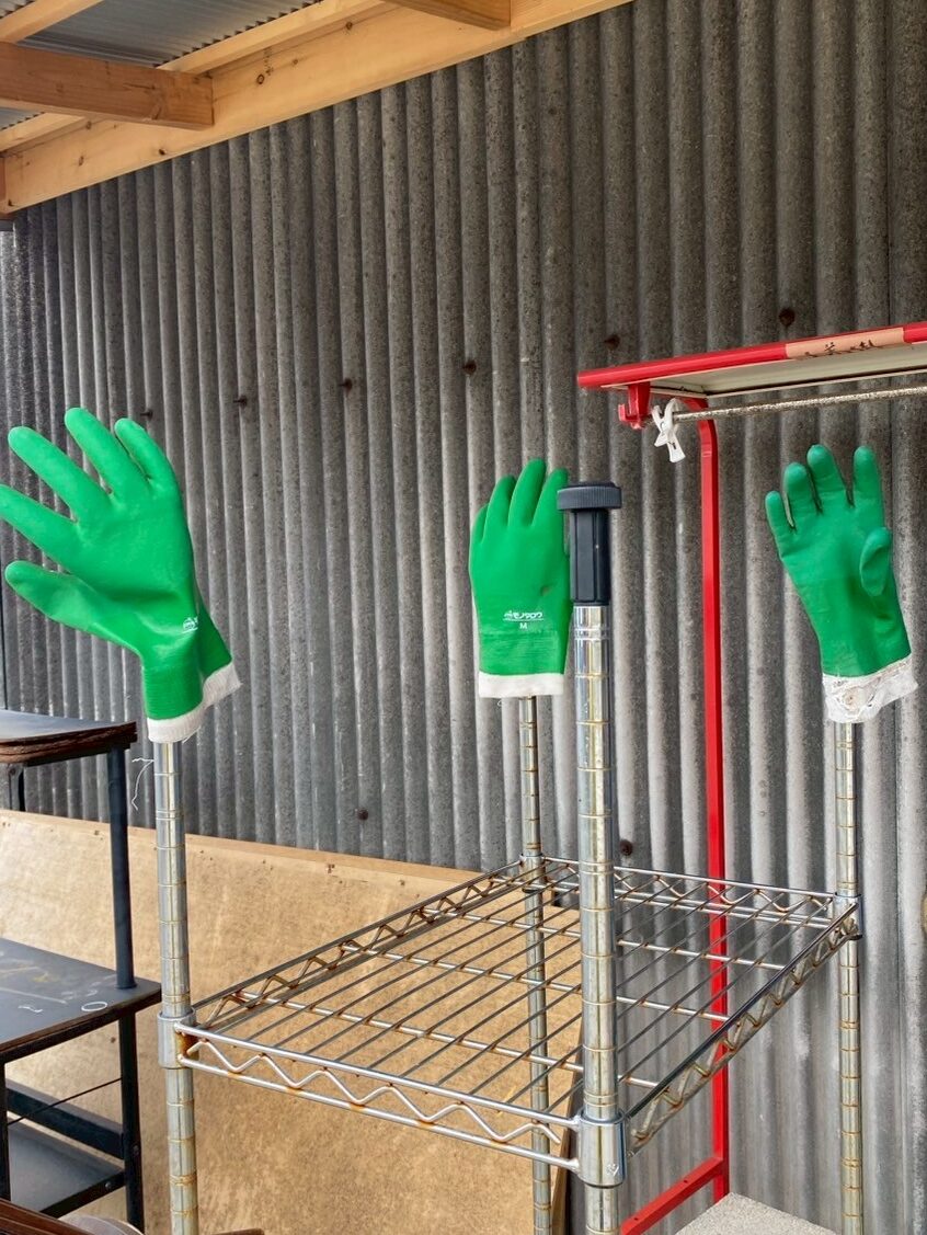 スタッフブログ 2025.4.15幡野ファーム、農場の風景 2025年4月15日 hatanofarm ある日の農場の様子。 今日は農場内を歩いていると、緑の手袋を見つけました。 以前も見つけてご紹介したことがあるのですが・・👀 その時に緑手袋がいたのがこちら↓↓↓ 台車です!台車のパイプのところで乾かされていました。 そして今日見つけたのがこちら↓↓↓ ラックのようなパイプのところにいました👀 色々なところに緑手袋がいて、今日はここかと思う日々です👀