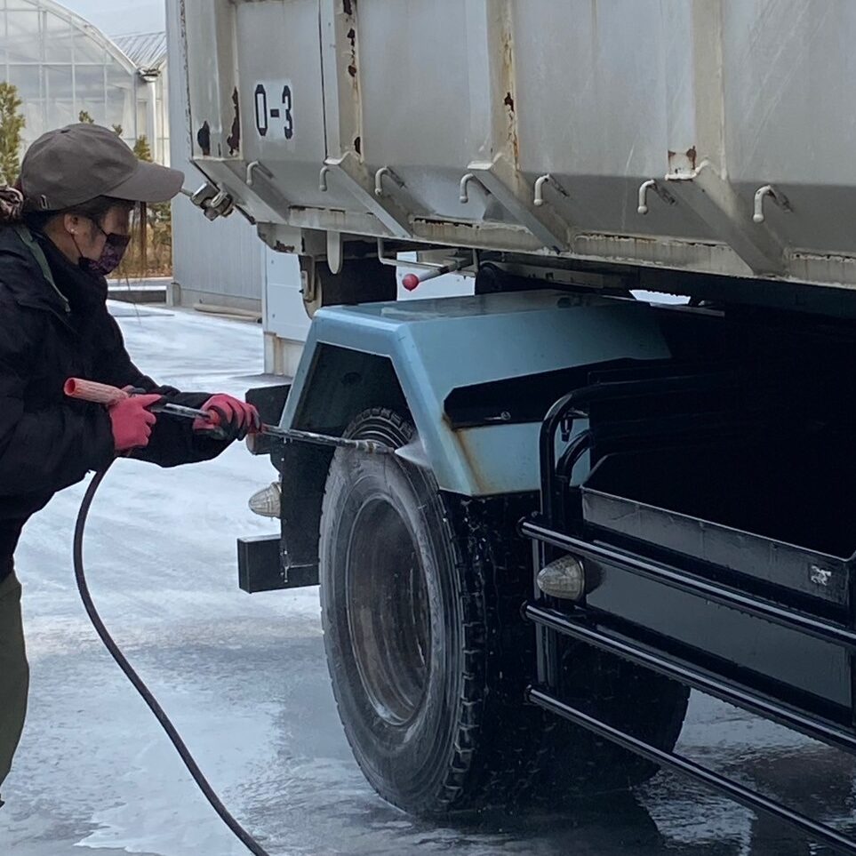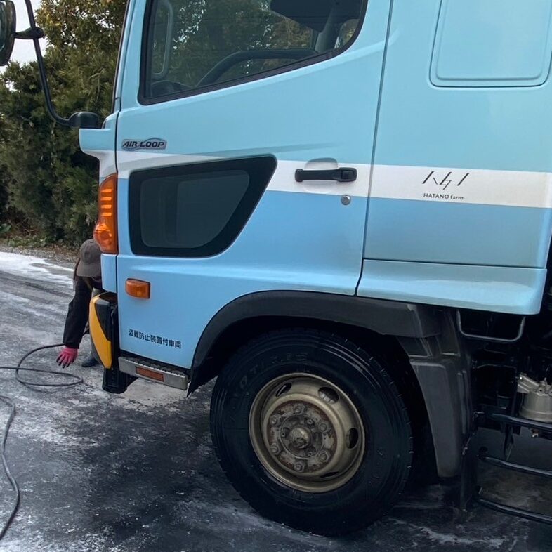 スタッフブログ 2025.1.23 幡野ファーム、防疫対策 2025年1月23日 hatanofarm 朝の農場の様子。 今日は消毒作業の様子をお届け。 国内で鳥インフルエンザの発生する中、こまめな防疫措置は人はもちろん、入場車両も欠かせません。 下側の部分やタイヤの隙間など細かなところまで消毒をしていきます。 敷地内に入るとき、荷を積んで出ていくとき、車両の消毒作業を行っています。