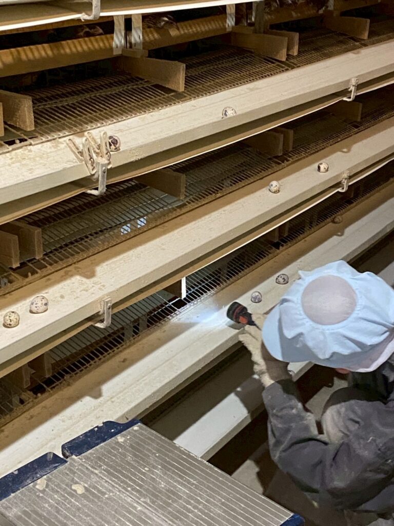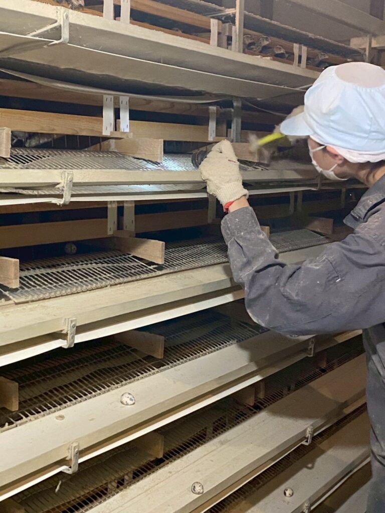 スタッフブログ 2025.4.3幡野ファーム、農場の風景 2025年4月3日 hatanofarm ある日の農場の様子。 今日は成鶉舎の死鳥出し作業の様子です。 ベルトの掃除をしながら死んでしまっている子がいないかを見ながら、見つけたら取り出してあげます。 上の段から下の段まで、残っているうずらたちのためにも丁寧に作業を行っています。 掃除もほこりなどが溜まってしまうので欠かさず行っています。