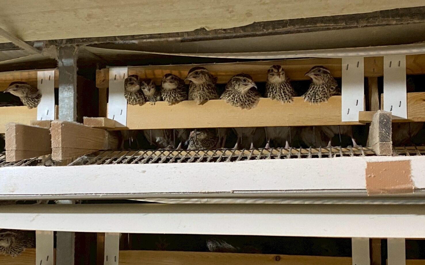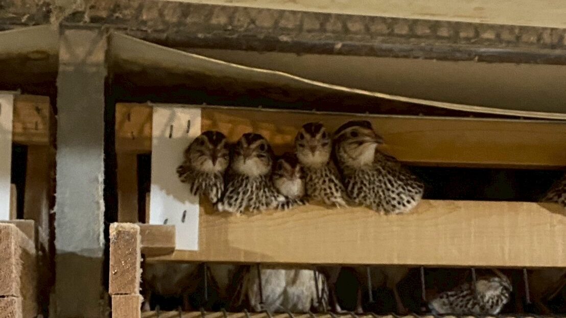 スタッフブログ 2025.4.3 農場の風景、狭くないですか? 2025年4月3日 hatanofarm ある日の農場の様子。今日は成鶉舎の様子をお届け。 今日もたくさんのうずらたちが顔を出してこちらを見ているのがとてもかわいいですね😊 鶉舎の中を見ているとこんなうずらたちを見つけて、つい言ってしまいました👀 「真ん中の子、狭くないですか?👀」 ギュッと5羽が集まってこちらを覗いていました😊 幡野ファームでは、飼養衛生管理基準に基づいた適正な飼養羽数で、うずら達が健康に過ごせる環境づくりに取り組んでいます!!