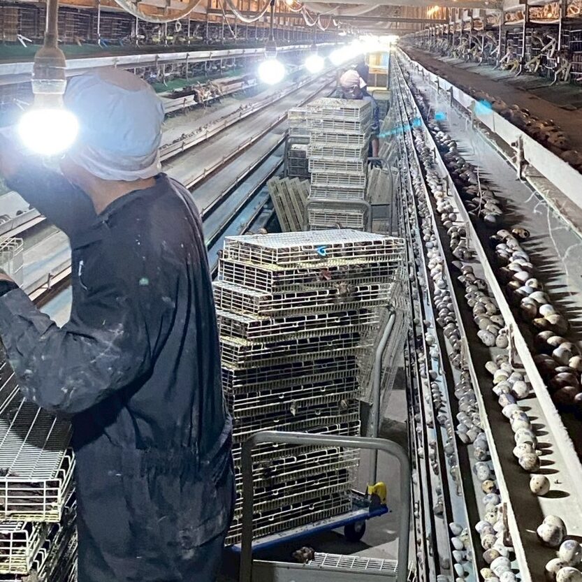 スタッフブログ 2025.5.9幡野ファーム、農場の風景 2025年5月9日 hatanofarm ある日の農場の様子。 今日は毎週行われている成鶉舎への引っ越しが行われていました👀 今日もたくさんのうずらたちが引っ越しをしてきました! 空いていた部屋にうずらたちが入って引っ越し完了です!
