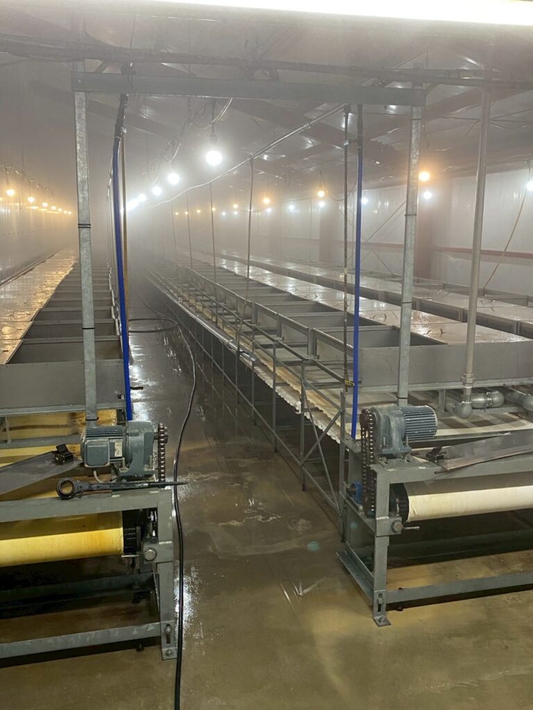 スタッフブログ 2025.5.27幡野ファーム、農場の風景 2025年5月27日 hatanofarm ある日の農場の様子。 今日は育成舎の洗浄が行われていました。 洗浄を行うと水蒸気で真っ白になります😮 高圧洗浄機を使い壁や、ひな達が入っていた箱、下のベルトもきれいに洗っていきます。 次のひな達のためにしっかり準備を行います! 育成舎のほかのひな達は、今日も元気にご飯をもりもり! 食べた後のポコポコと穴が開いているところがなんともかわいらしいです😊