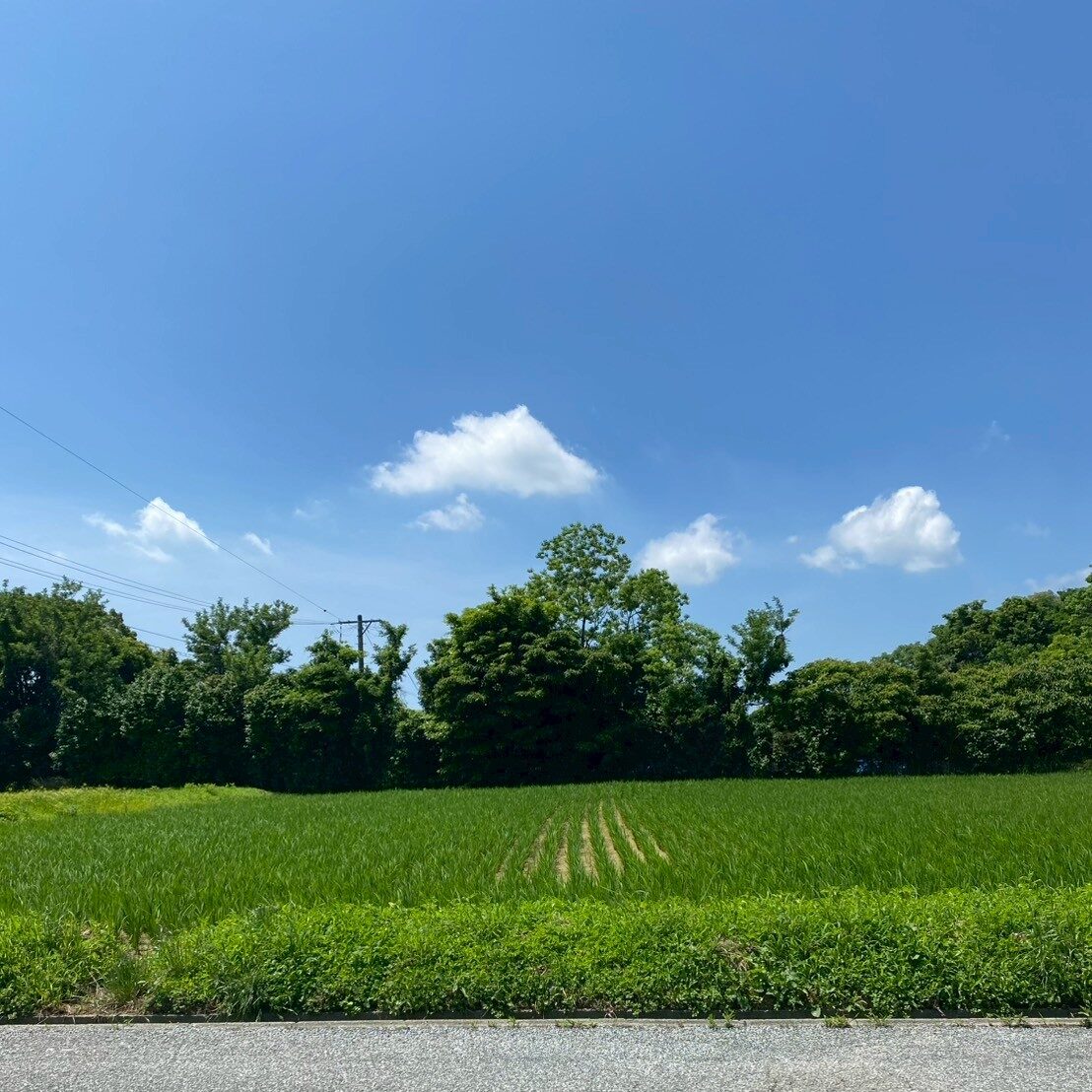 スタッフブログ 2025.6.17幡野ファーム、農場の風景 2025年6月17日 hatanofarm ある日の農場の様子。 先週このあたりの地域も梅雨入りの発表がありましたが、今日はよく晴れ気温が高くとても暑いです🥵 湿度も感じられて、さらに暑さが厳しく感じます。 稲や空の青さはとてもきれいですが、熱中症や体調に気を付けていきましょう!