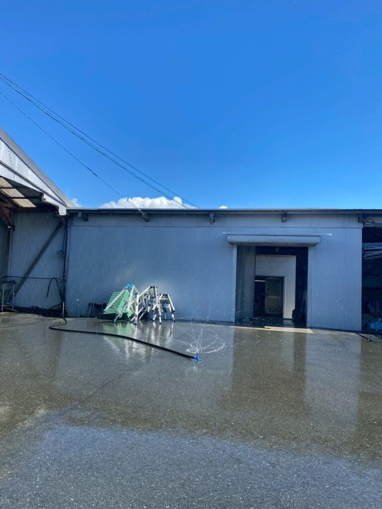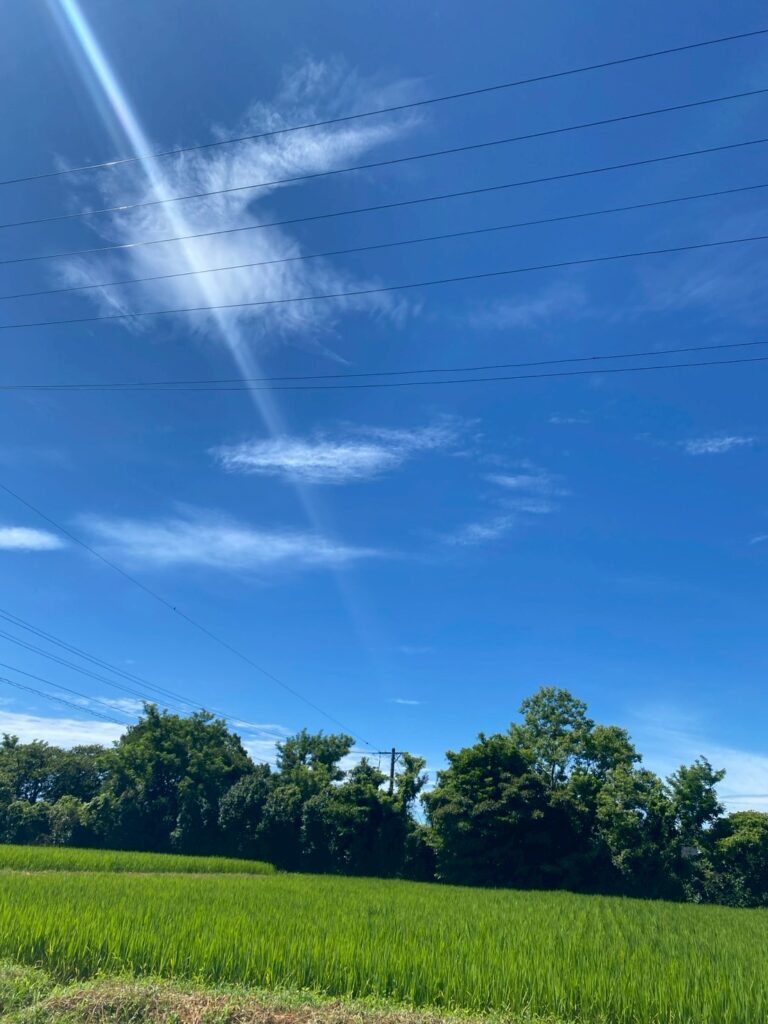スタッフブログ 2025.7.10幡野ファーム、農場の風景 2025年7月10日 hatanofarm ある日の農場の様子。 今日も暑い。とにかく暑いです🥵 ですが空は青く白い雲が浮かびとてもきれいな日となりました✨✨ 農場内では、暑さ対策としてスプリンクラーで水を撒いているのですか・・・・ 涼しさを求めてきれいな蝶がやってきました😊 一休みするとまた元気に飛び立っていきました🪽