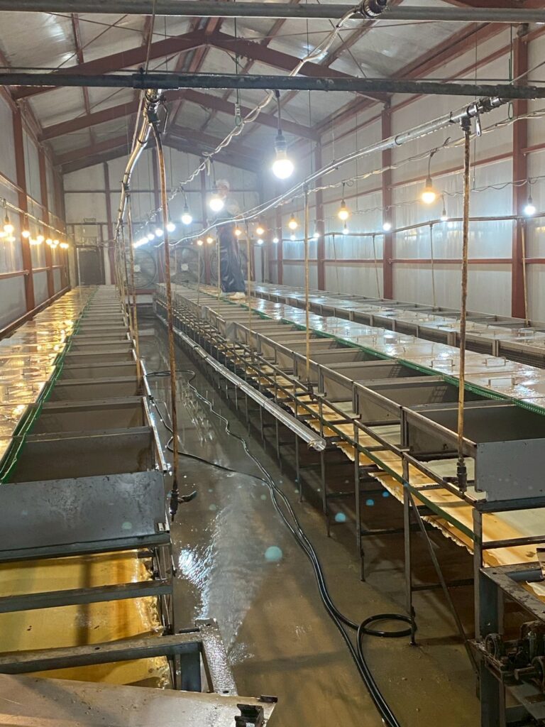 育雛舎では毎週行われている洗浄が行われていました。