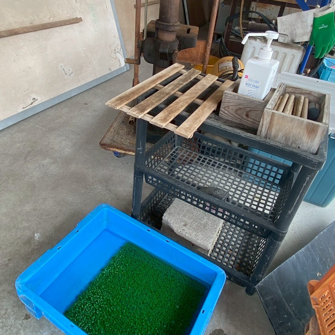 各鶉舎入る前には、踏み込み槽での靴の消毒と、手指の消毒を必ず行います🙌🏻