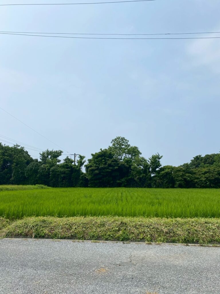 暑い中農場前の田んぼの稲はどんどん大きくなっています🌾