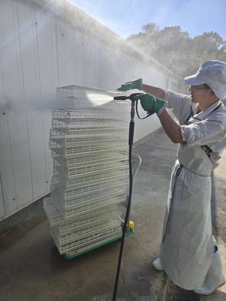 うずらたちに負担がかからないよう素早く行っていきます。