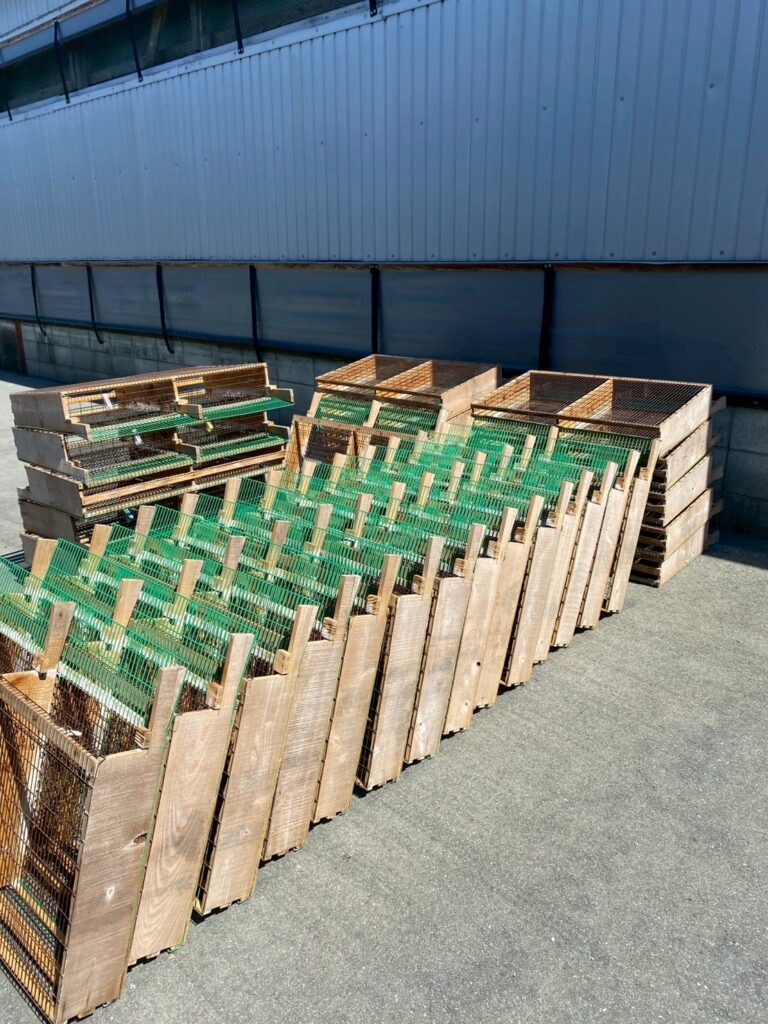 スタッフブログ 2025.7.28幡野ファーム、農場の風景 2025年7月28日 hatanofarm ある日の農場の様子。 今日も夏空が青くとてもきれいです✨✨ 今日もとても暑いので、熱中症に気を付けながら作業を行っていきます💪🏻 今回は農場内の様子をお届け👀 成鶉舎で使うゲージが干されていました🌞 次のうずらたちのために準備中です! 成鶉舎のうずらたち。今日もみんなで覗いてます👀 覗いている姿、とてもかわいいですよね🥰 午前にたまご出し作業をしてすべてのたまごを回収しましたが、すでにたまごがちらほら👀 毎日のたくさんのたまごに感謝です!!