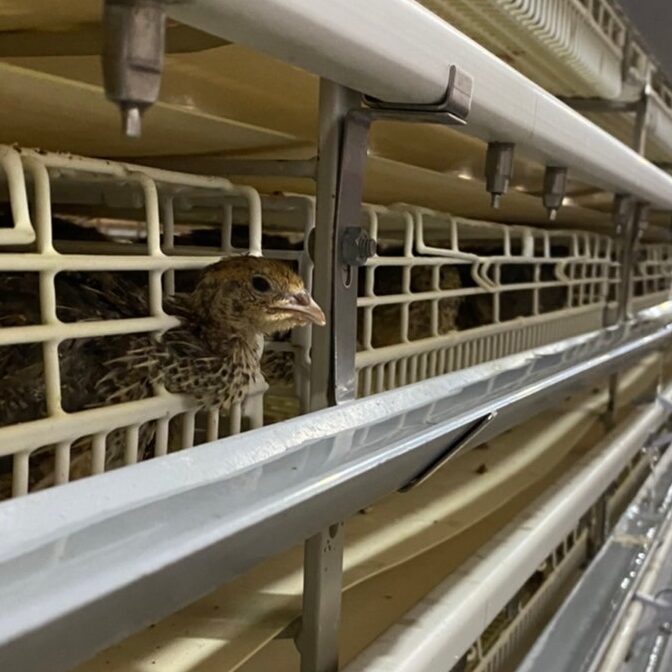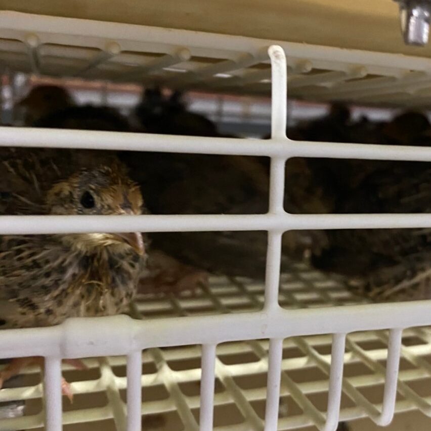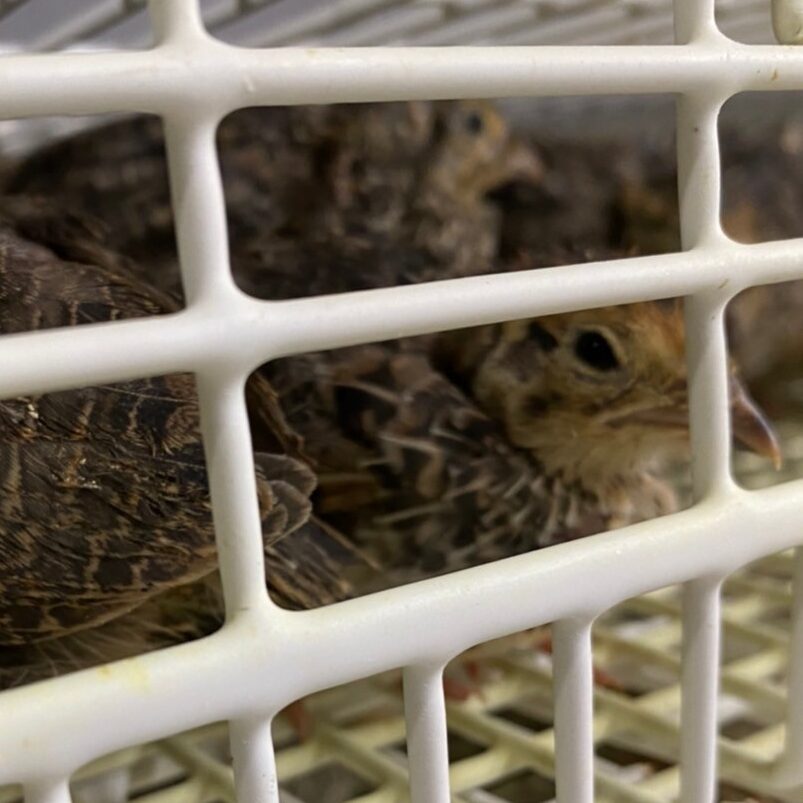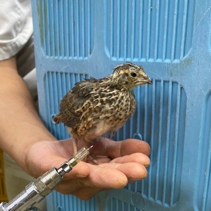 うずらの雛たちは産まれてから2週齢で引っ越しをします。その時、外社会に出る準備としてワクチン接種を行います。