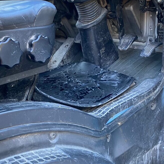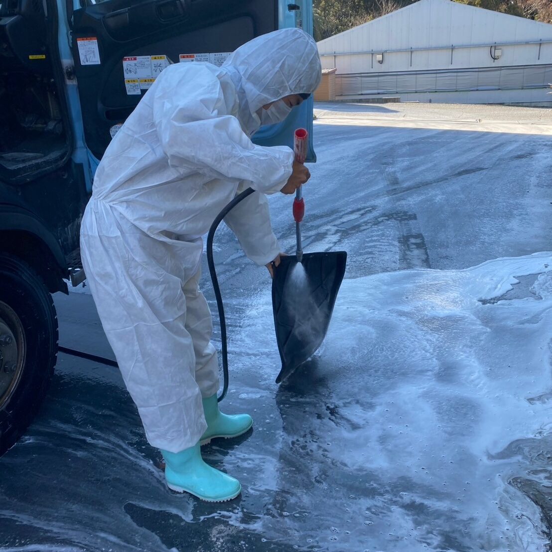 スタッフブログ 農場の管理 2025.2.6幡野ファーム、農場の風景 防疫措置 2025年2月10日 hatanofarm ある日の農場の様子。 今回は防疫措置で消毒作業を行っている様子をご紹介。 以前紹介した車両消毒は外側でしたが、 今回中のマットを消毒している様子です。 この足元にあるマット、これを取り外し消毒を行います。 鳥インフルエンザが拡大する中で、細かなところまで消毒作業を行い農場内にウイルスや菌を持ち込まないようにします。 堆肥場などに行く場合は防護服で頭まで覆うようにします。