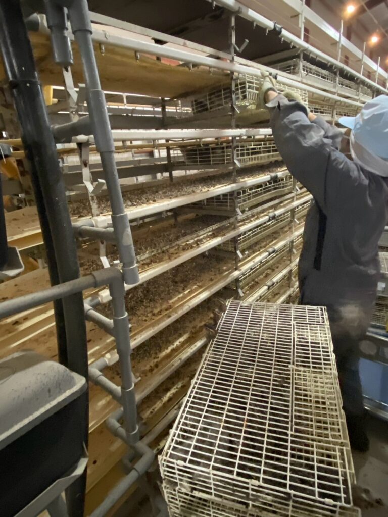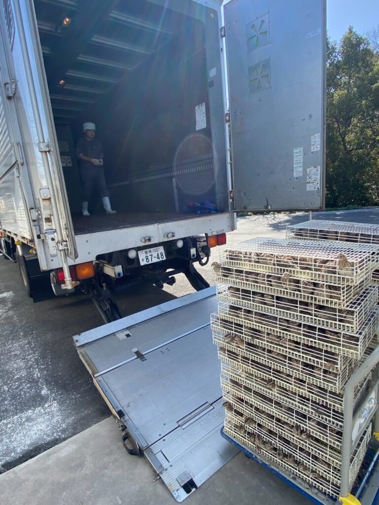 スタッフブログ 2025.3.7幡野ファーム、農場の風景 成鶉舎移動 2025年3月7日 hatanofarm ある日の農場の様子。 毎週金曜日に行われている成鶉舎への引っ越し作業の様子をお届け。 今日も大きくなったうずら達が引っ越しをしてきました😄 棚からカゴを取り出し、トラックに乗せてうずらたちを成鶉舎まで運んでいきます🚚 成鶉舎に到着後トラックからおろしてそれぞれの部屋へ決められた羽数を素早く入れていきます。 すべて入れ終えたら引っ越し作業は終了です🏡 新しいお部屋に引っ越しします~