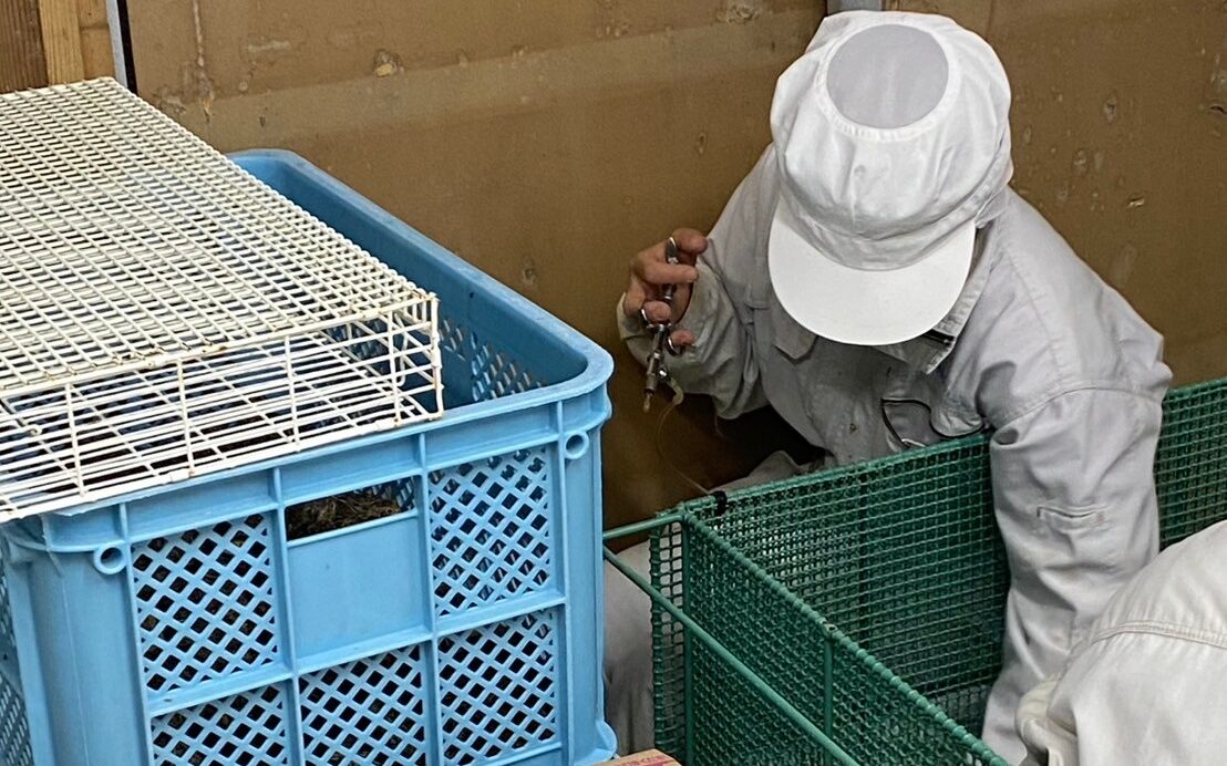 スタッフブログ 2025.1.28幡野ファーム、農場の風景 中雛移動 2025年1月28日 hatanofarm ある日の農場の様子。 今回は中雛舎での引っ越し作業をご紹介。 今年も多くの雛たちがすくすくと育ってくれています。 引っ越しの際には一羽づつワクチン接種を行います。 雛たちの負担にならないよう素早く行います。 ワクチン接種後は新しいお部屋へ。 何もなかった棚が雛たちでいっぱいになりました。