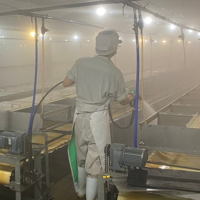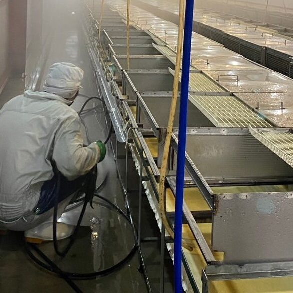 スタッフブログ 2025.1.15幡野ファーム、農場の風景 2025年1月15日 hatanofarm ある日の農場の様子。 今回は育成場の洗浄作業の様子をお届け。 また新たな雛を迎えるために洗浄を行いきれいな状態を保っています。 通路や台の下、壁もきれいに洗浄を行います。 作業中は水蒸気が広がり作業はなかなか大変ですが、ひなたちのために頑張ります。 洗浄後は通路や台の下の水を切っていきます。 水を切ったら洗浄作業は終了です。