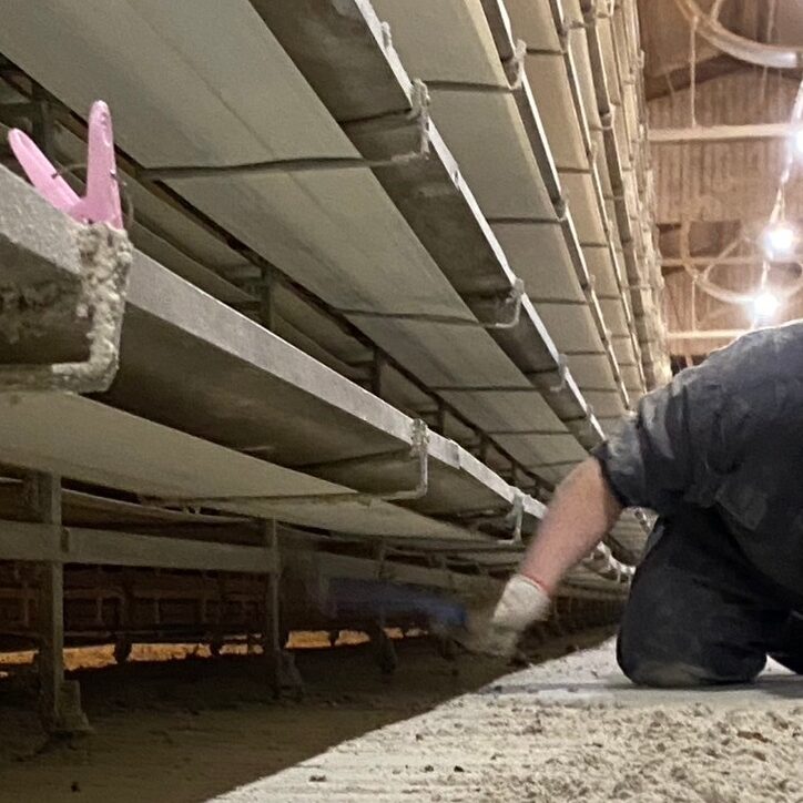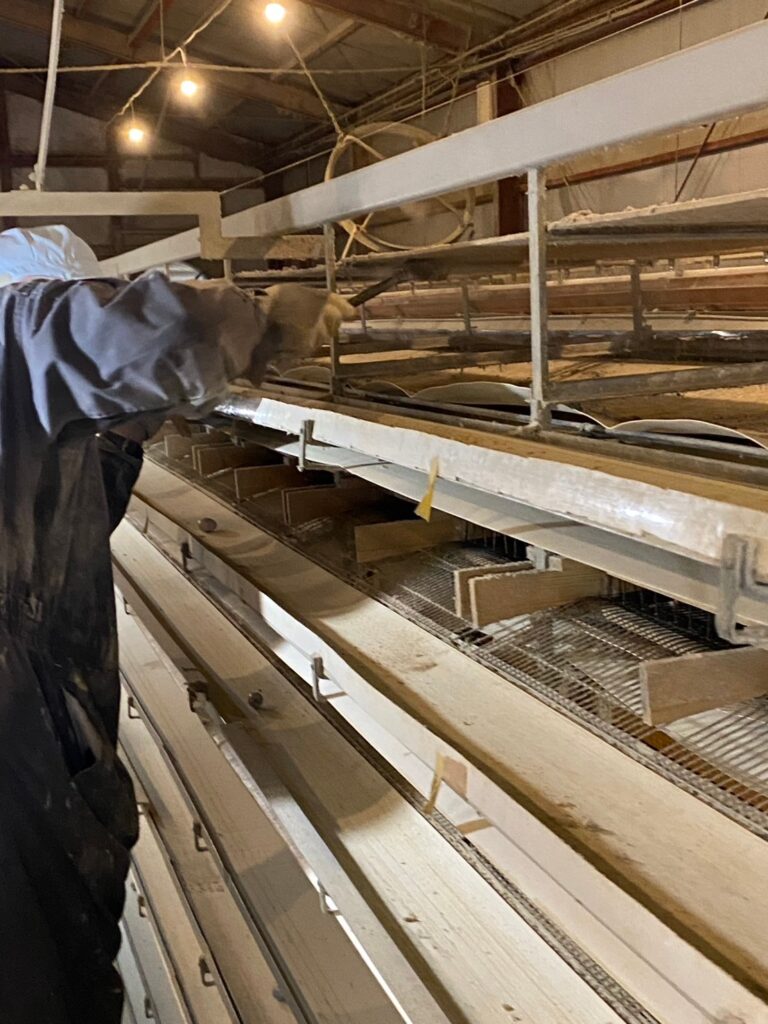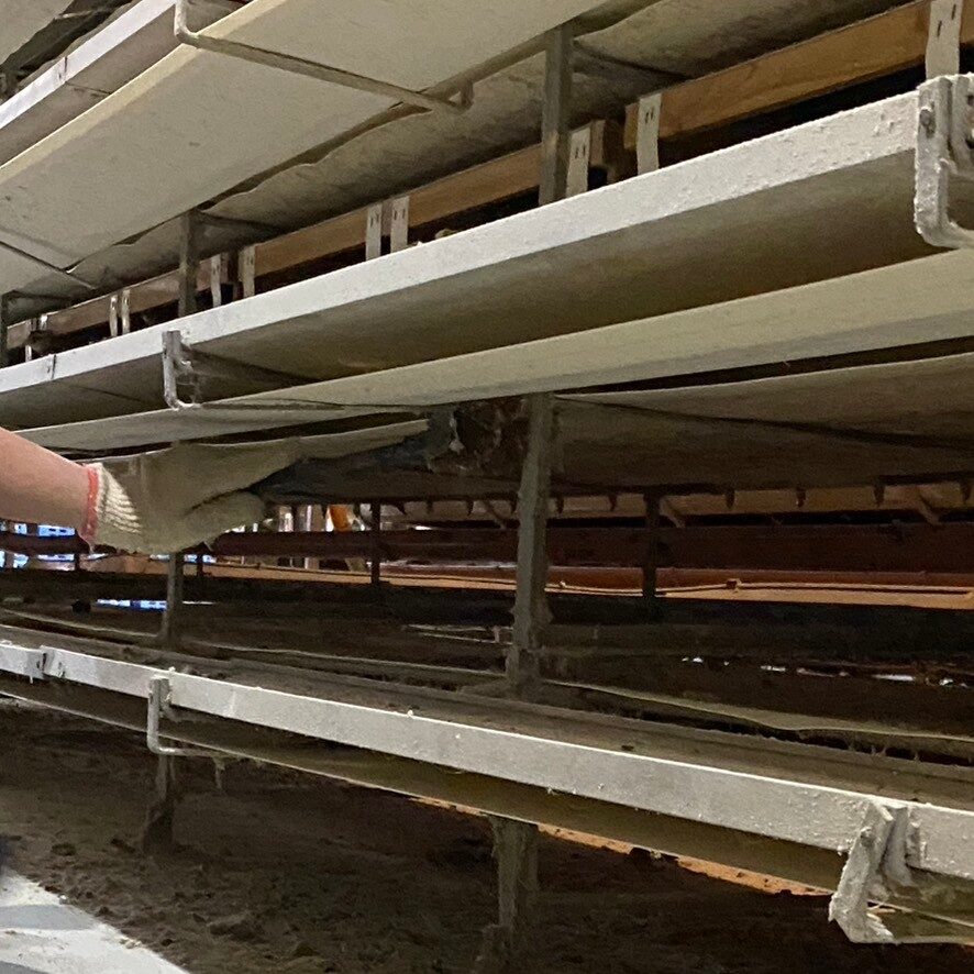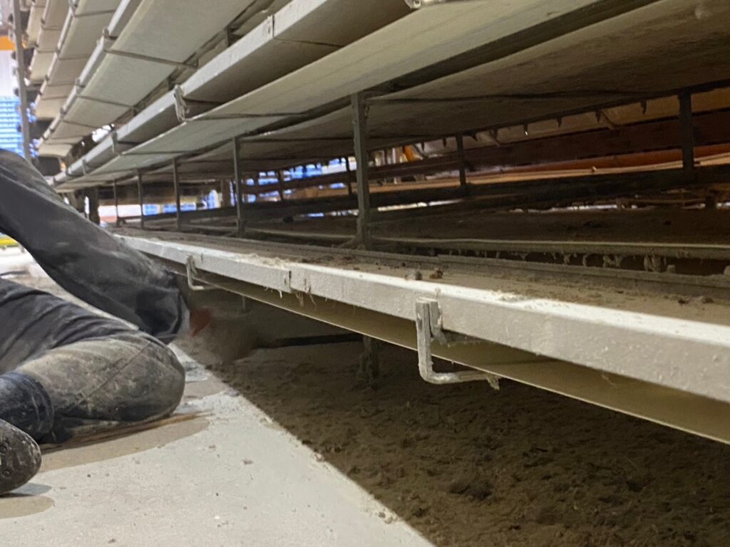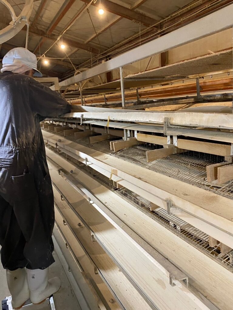 スタッフブログ 2025.3.3幡野ファーム、農場の風景 2025年3月3日 hatanofarm ある日の農場の様子。 今日は成鶉舎の清掃作業をお届け。 今回はベルトの下にたまるほこりなどを掃除していきます。 ブラシを使いながら、ベルトの隙間や下側に溜まっている埃やごみを取り除いていきます。 上の段もベルトを持ち上げ隙間を掃除し、細かい部分までほこりなどを取り除いていきます。 餌や羽など様々なものが溜まってしまうので、衛生管理のため細かな掃除が日々欠かせません。