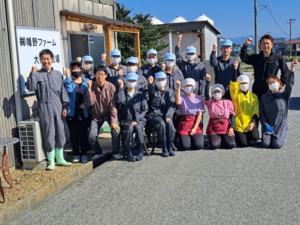 働く仲間たち 2023.4.1 入社式 2023年4月1日 hatanofarm 本日入社式を行いました! 真新しいユニフォーム姿 当社初の新卒のみなさんです。ユニフォーム似合っていますか? 不安と期待の表情が入り混じっていますが、大丈夫!今日からみんなのホームです。たくさんの経験を重ねてください。 着替える前に記念の1枚 快晴の下、みんな集合!