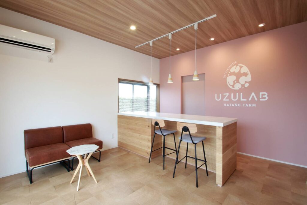 広報/SNS UZULAB 🎊2024.7.16 UZULAB完成🎊 2024年7月16日 hatanofarm この看板が目印です。 田舎道をさらに一本奥へ入った隠れ家的立地。 木枠から制作して頂いたこだわりの外観です。 皆様にリラックス頂ける空間を創造しました。 LAB入口です LAB内です