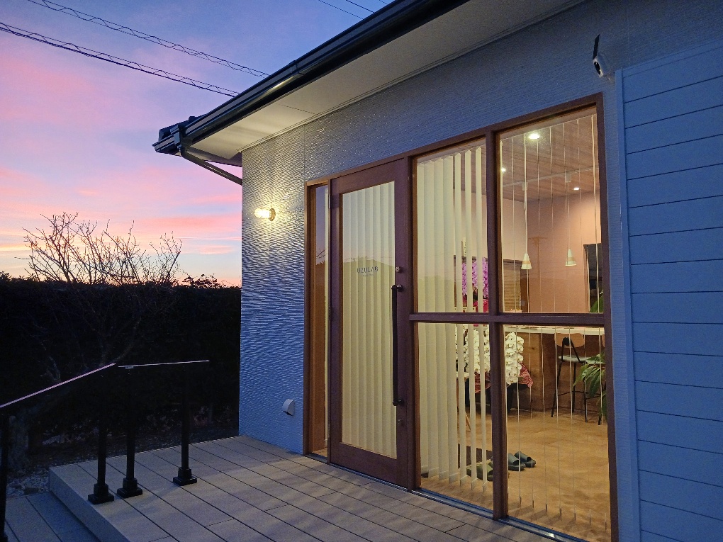 きれいな夕焼けとUZULABが幻想的だったので、記念に一枚。